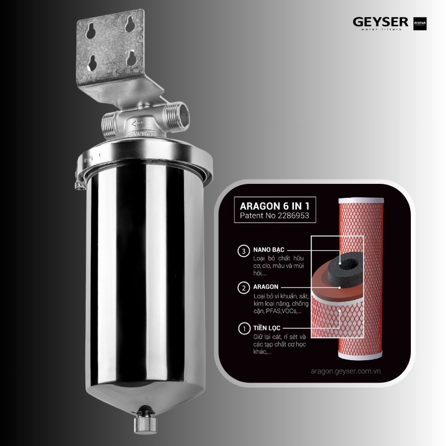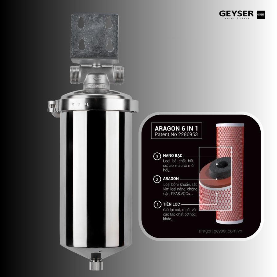 🎯 Geyser Ecotar là thương hiệu máy lọc nước đầu tiên tại Việt Nam được kiểm nghiệm độc lập tại Thụy Điển chứng nhận loại bỏ 100% PFAS nhờ công nghệ lọc độc quyền Aragon.”
